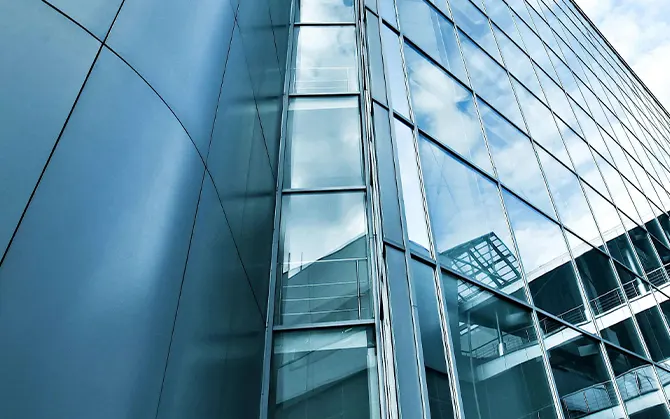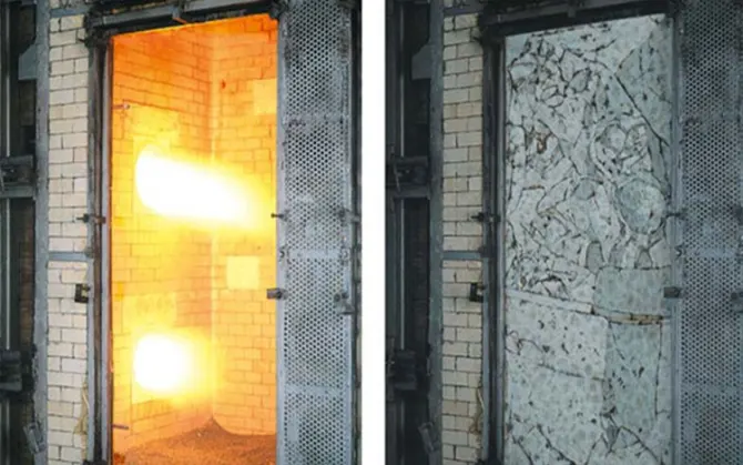 Intumescent fire rated glazing is a laminated product made up of alternating layers of glass and clear intumescent inner layers. The fire rating can be up to 3 hours depending on the number of inner layers used. When exposed to a fire, the outer layer of glass shatters.