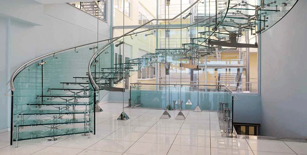 The use of decorative glass can range from doors (especially shower doors) to stairways and hand rails, desks, tables and walls. Furniture made of glass is classified as decorative glass, as are shelves and floors made of glass.